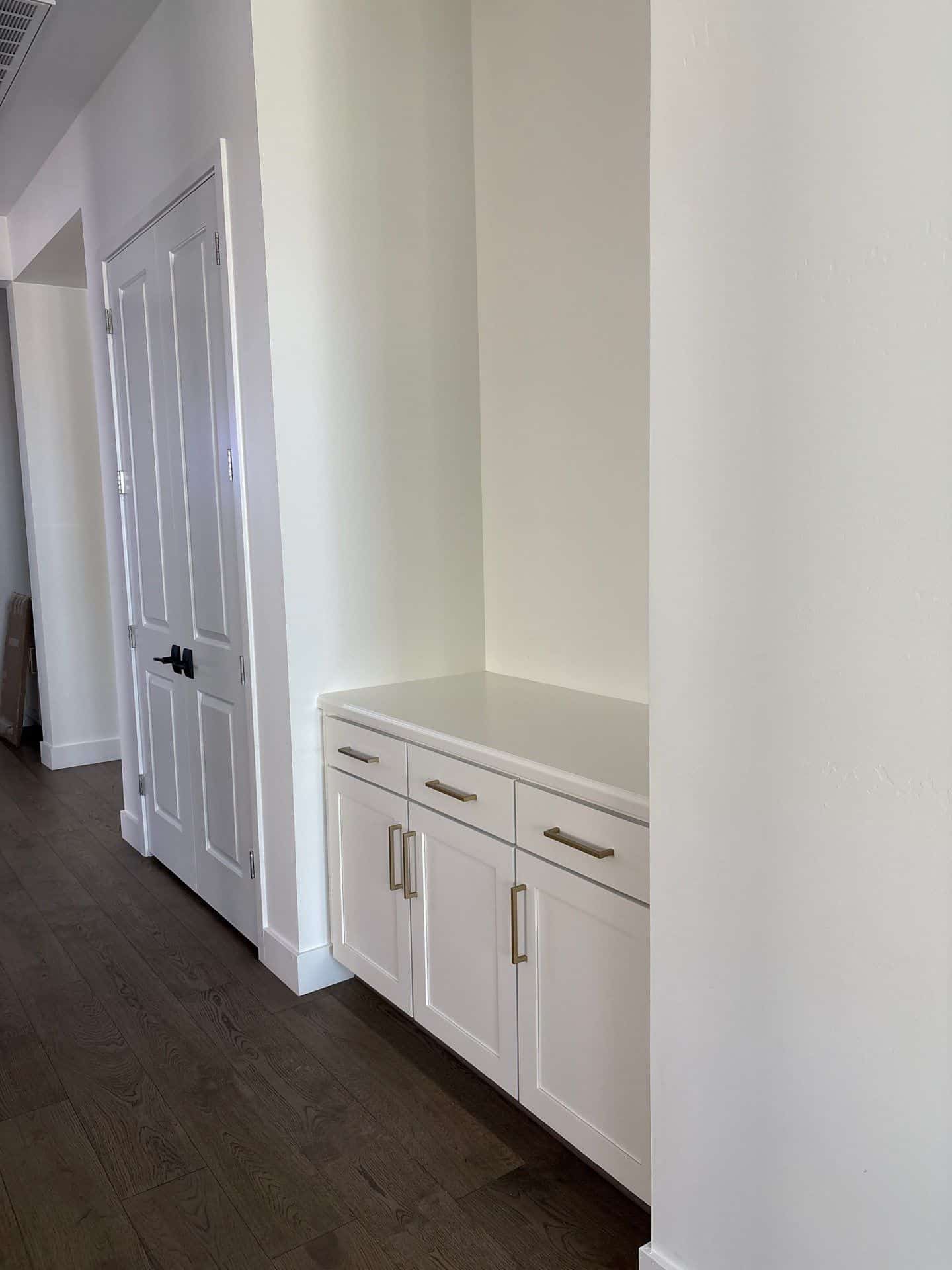 We began by thoroughly prepping the kitchen cabinets, ensuring every surface was cleaned, sanded, and primed for optimal paint adhesion. Using premium Dunn-Edwards products, we applied a rich, smooth coat of paint matched to “Off White Boar”—a soft, warm neutral that beautifully complements both traditional and contemporary kitchens. Our team paid close attention to detail, delivering a flawless finish that elevates the entire kitchen atmosphere.