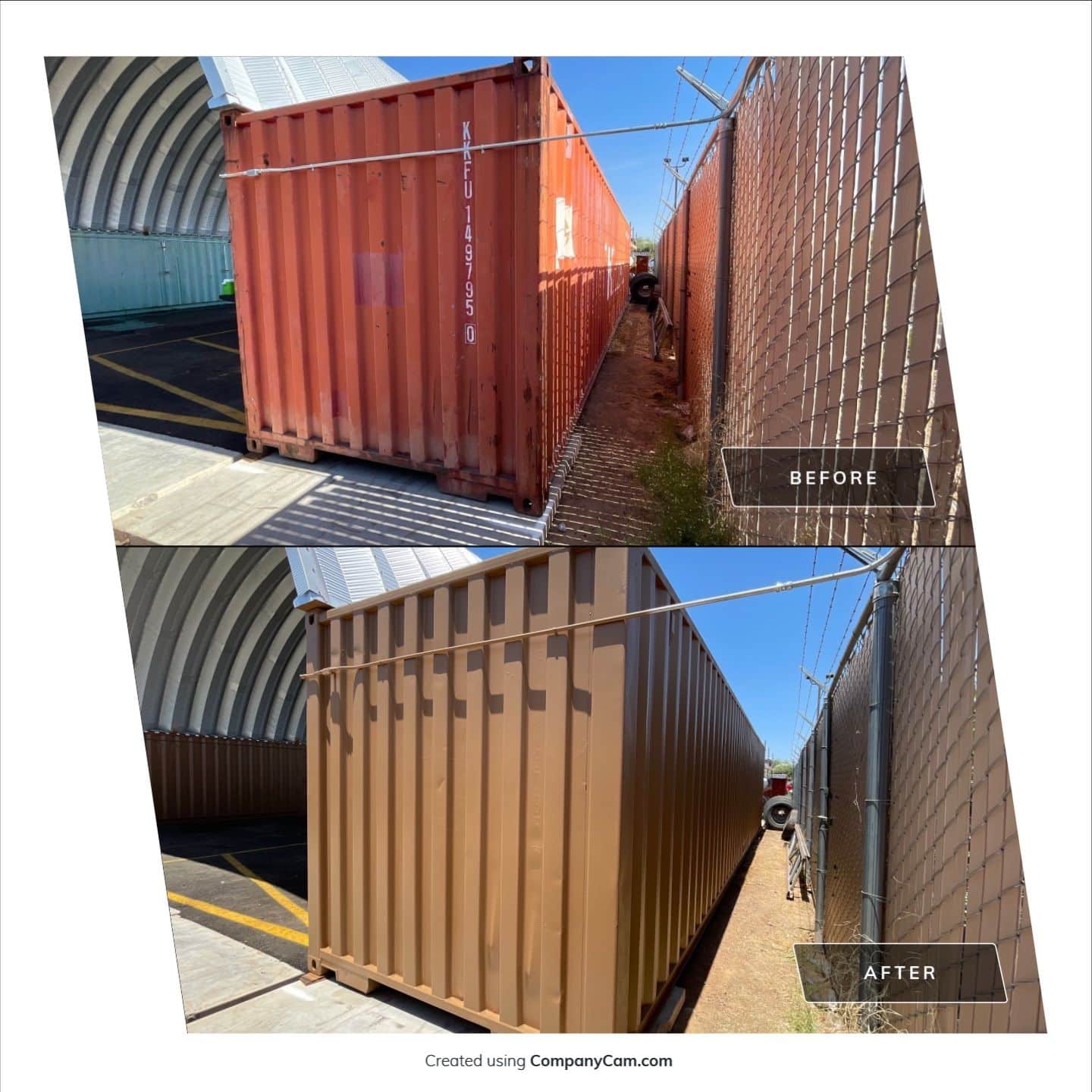 Given the steel surface, our team prepared to ensure optimal paint adhesion and longevity. This included power washing, sanding, and priming the steel surfaces. The painting process was carried out precisely, applying multiple coats of Dunn Edwards Match Crane for a flawless, even finish. The Black Behr trim was applied with the same level of care, resulting in sharp, clean lines highlighting the building’s architectural features.