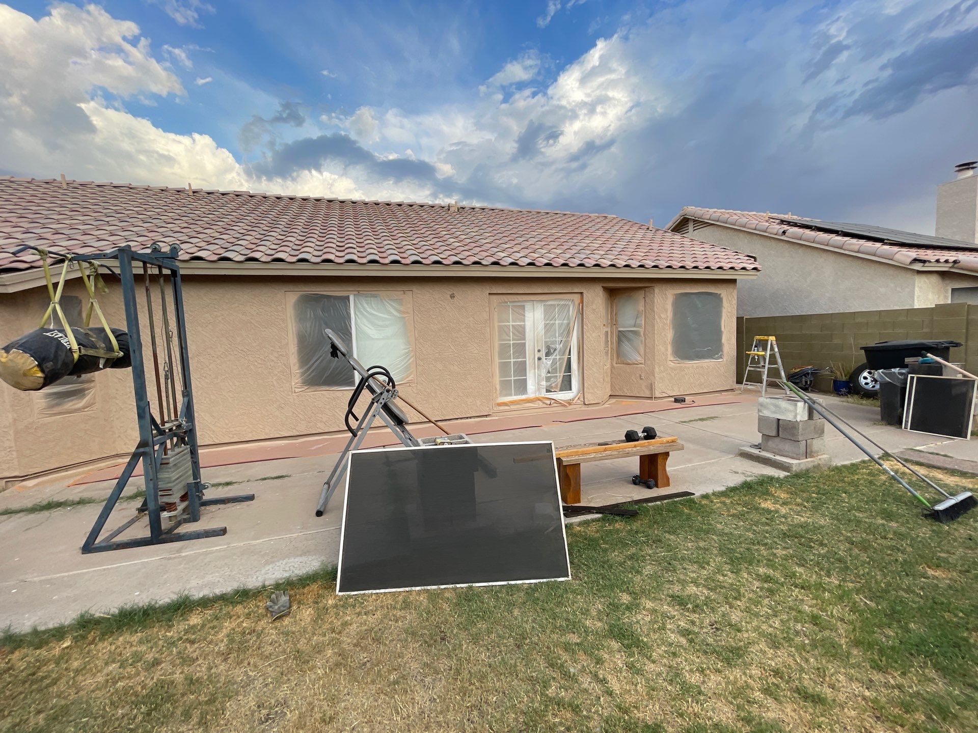 For this project, our team was tasked with updating the stucco exterior of a charming home. The homeowners wanted a fresh and inviting look to enhance their home’s curb appeal. We selected Dunn Edwards paint for its exceptional quality and durability, choosing “Sandal” as the primary color for the main surfaces and “Oyster” for the trim. This combination of warm, neutral tones perfectly balanced elegance and modernity.