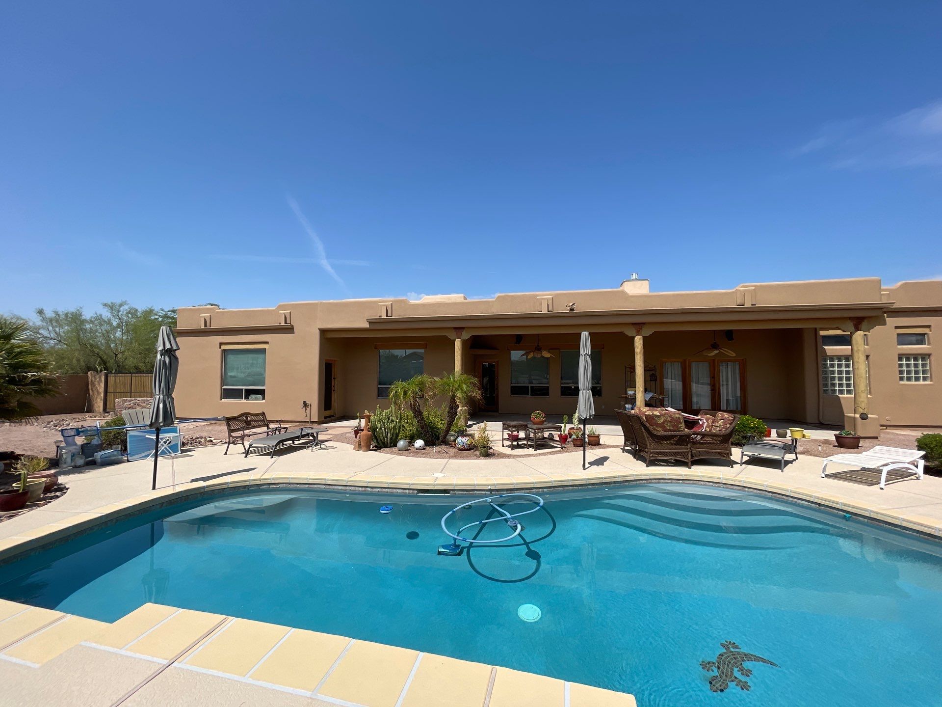 The property featured a stucco surface, a common choice in the Southwest for its durability and texture. Given Apache Junction’s hot and arid climate, it was essential to select paint that not only beautifies but also protects against the harsh elements. We began with a comprehensive surface preparation, including power washing, repairing minor cracks, and applying a suitable primer. This meticulous prep work ensured a smooth and long-lasting finish.