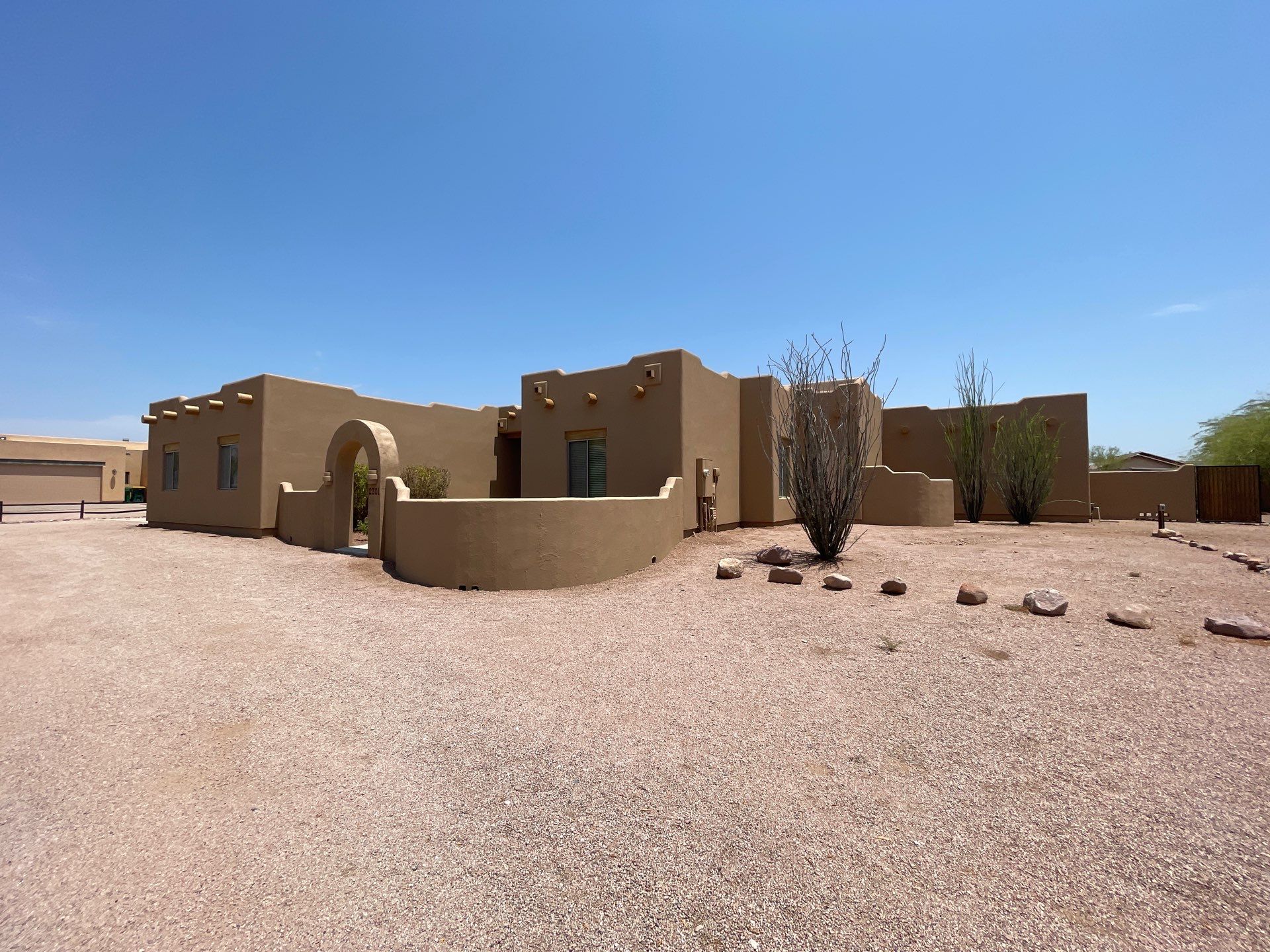 At Double G Painting, we take pride in delivering top-notch exterior painting services in Apache Junction that enhance the beauty and durability of our client’s properties. Our recent exterior painting project in Apache Junction, Arizona, exemplifies our commitment to quality and attention to detail. The project involved a full exterior makeover of a residential property, utilizing premium Dunn Edwards Paint products.
