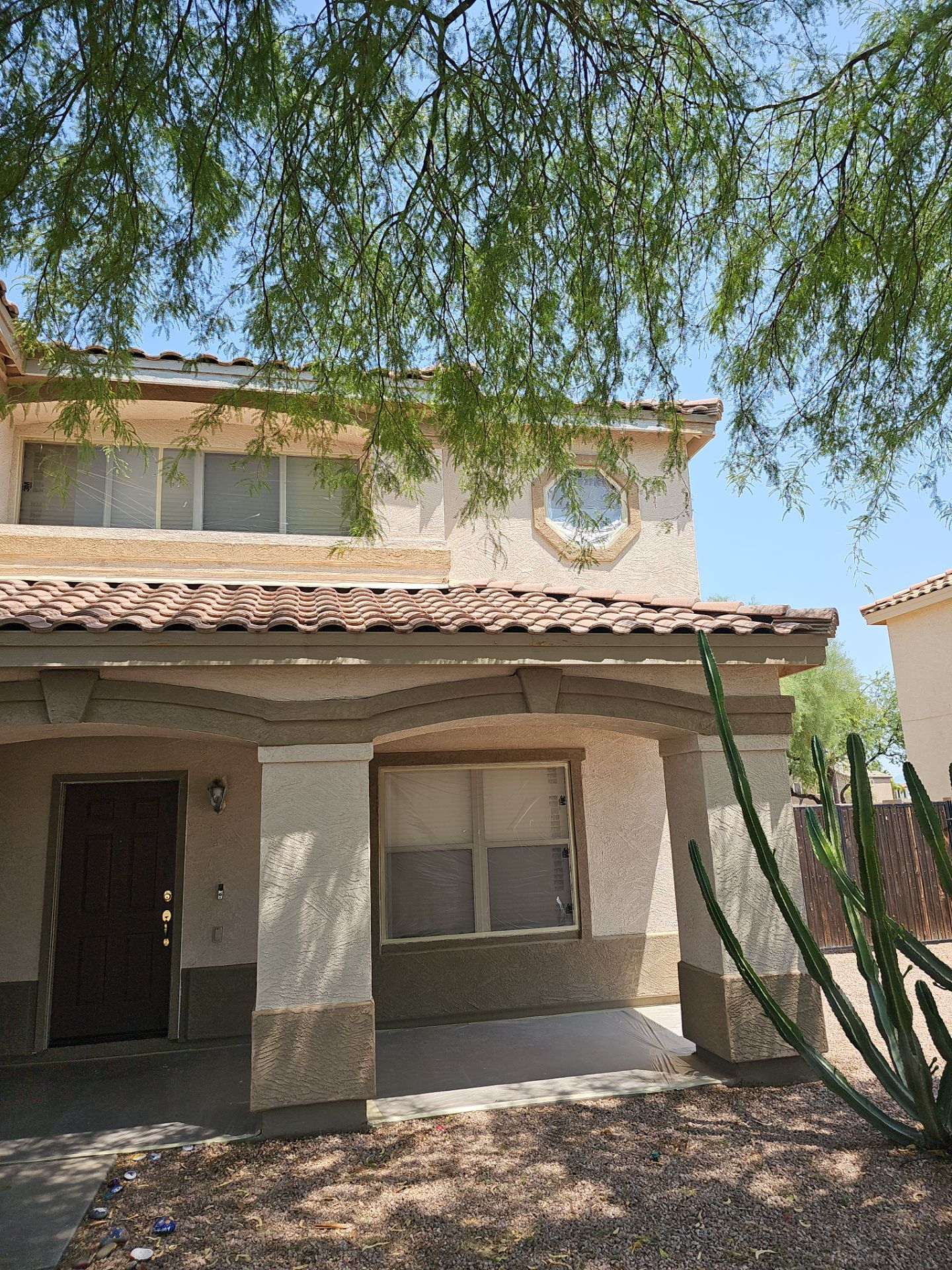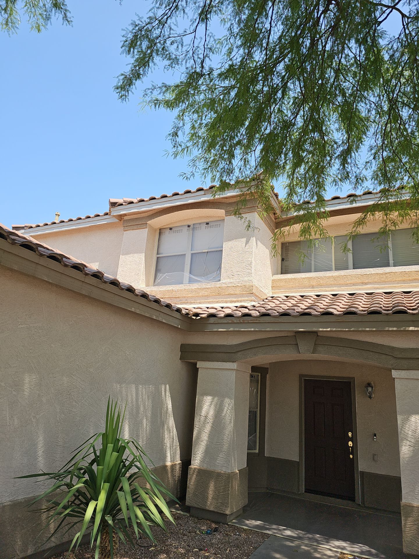 The Dunn Edwards Paint products used in this project are renowned for their excellent UV resistance and durability, which are essential qualities for homes in sunny Arizona. The combination of Apache Tan and Wood Lake not only adds aesthetic value but also provides a durable finish that will protect the stucco surface from the elements, ensuring the home’s beauty lasts for years to come.